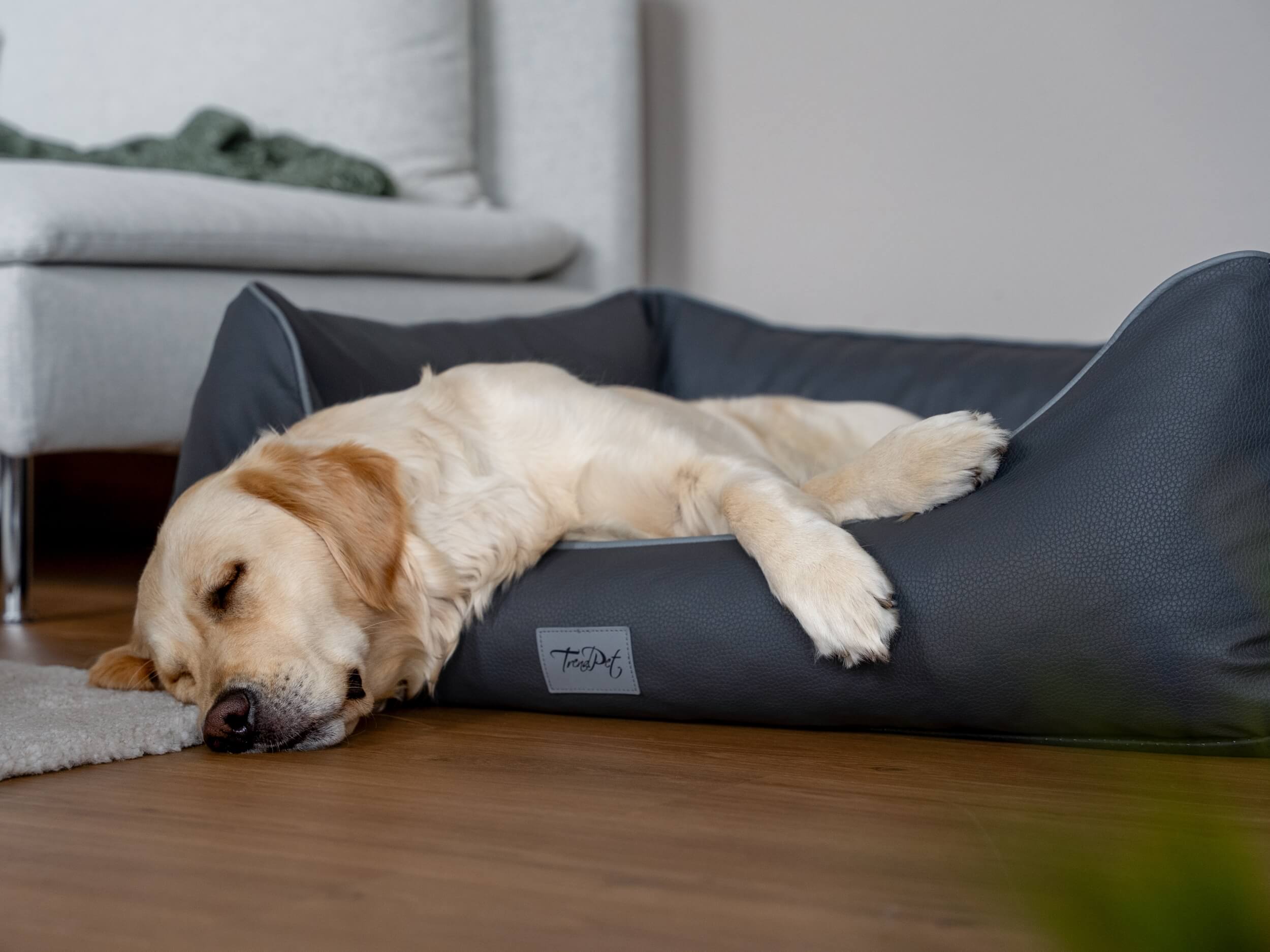 Das Runa Hundebett von TrendPet vereint den Komfort eines orthopädischen Hundebettes mit maximaler Qualität und moderner Optik. Die 5 cm Matratze aus 100 % Memory Foam sorgt für höchsten Komfort. Runa hat einen strukturierten Kunstlederbezug, was dem Bett eine moderne Optik verleiht. Die hochgepolsterten Seiten des Bettes bietet dem Hund zudem eine schöne Ablagefläche für den Kopf.