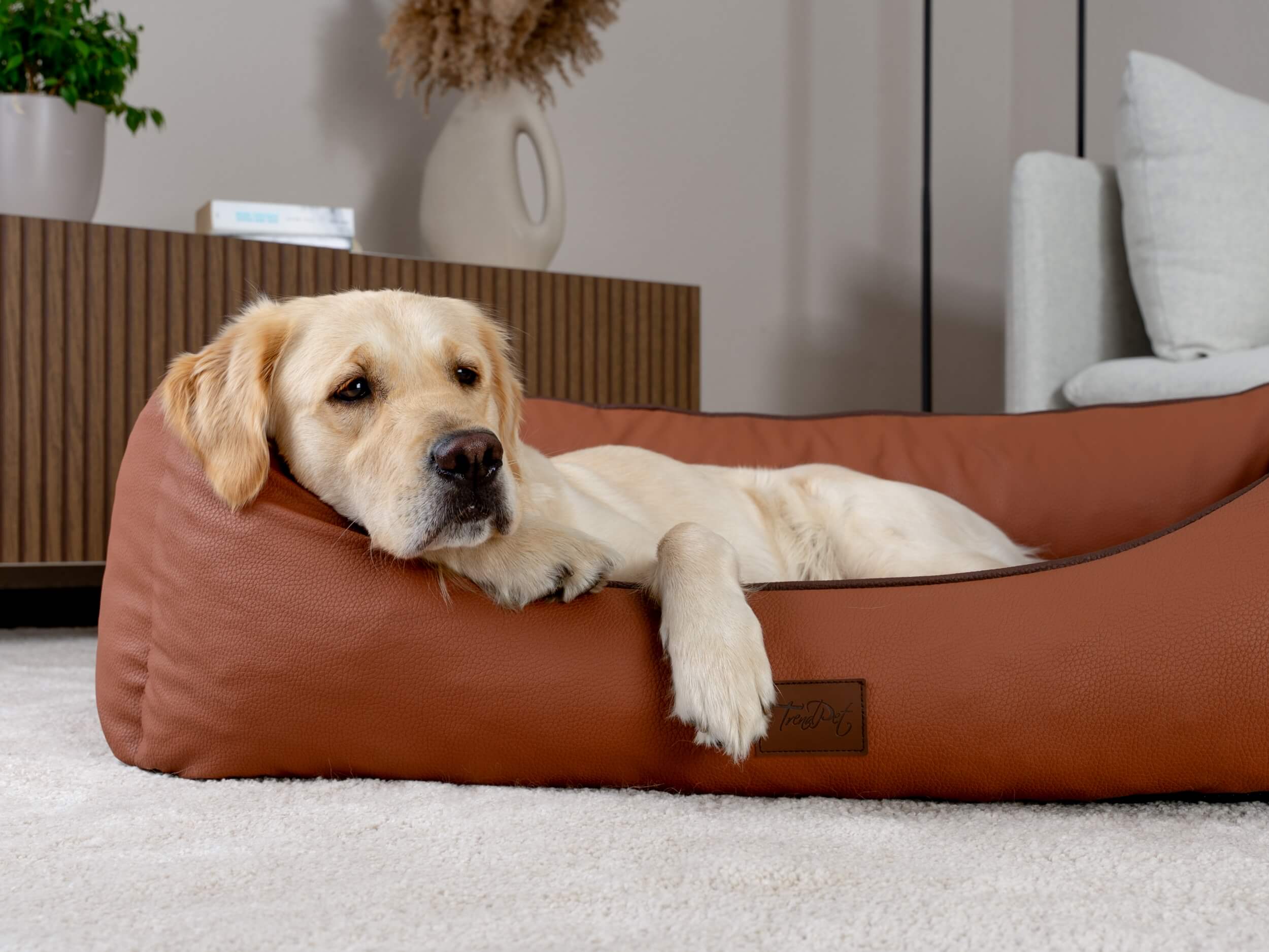 Das Runa Hundebett von TrendPet vereint den Komfort eines orthopädischen Hundebettes mit maximaler Qualität und moderner Optik. Die 5 cm Matratze aus 100 % Memory Foam sorgt für höchsten Komfort. Runa hat einen strukturierten Kunstlederbezug, was dem Bett eine moderne Optik verleiht. Die hochgepolsterten Seiten des Bettes bietet dem Hund zudem eine schöne Ablagefläche für den Kopf.