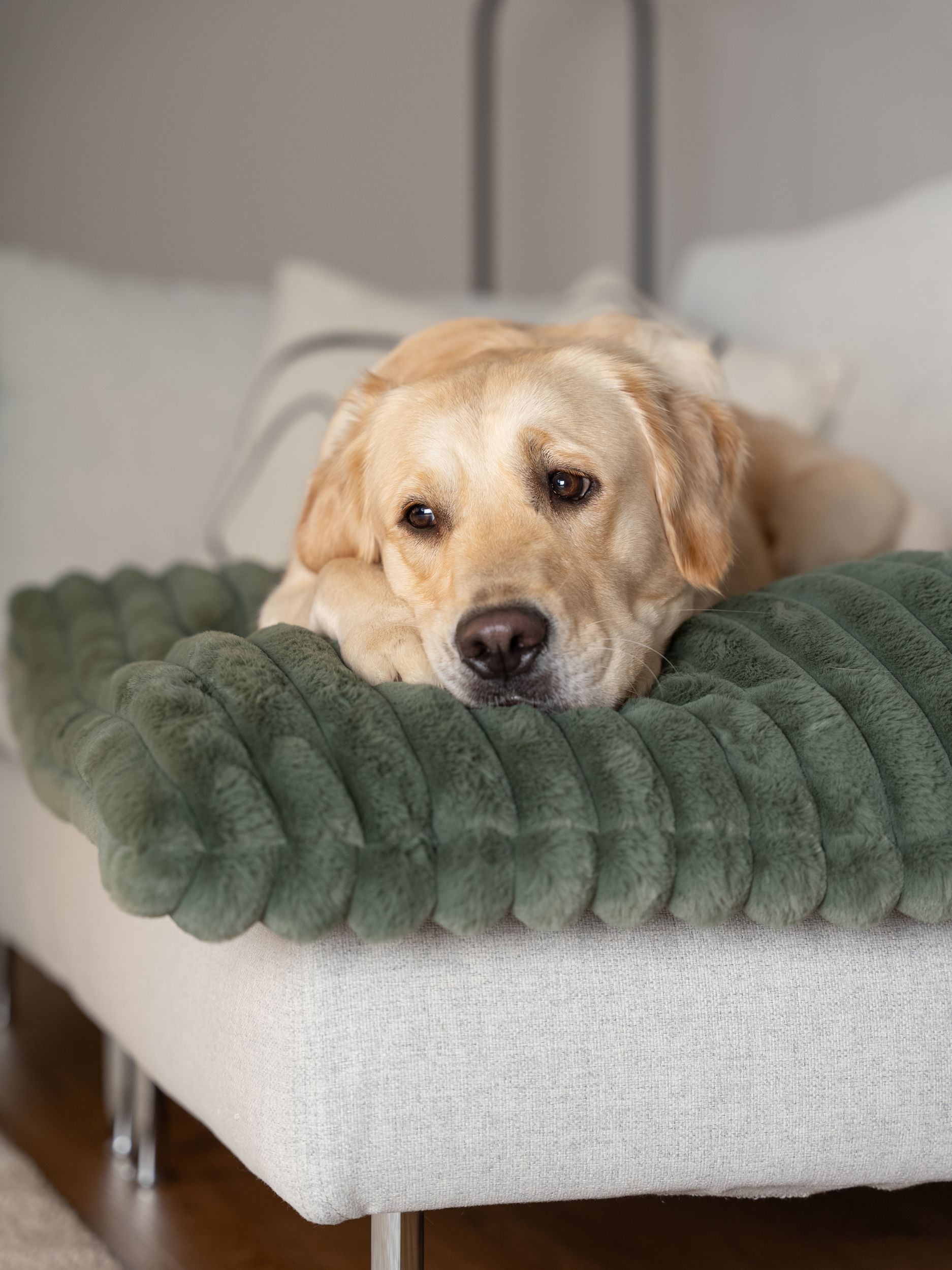 Mora bietet hohen Liegekomfort und fügt sich mit ihrem schönen, dunklen Grünton stilvoll in jedes Zuhause ein. Dank der vier erhältlichen Größen ist für kleine wie große Hunde die passende Variante dabei.