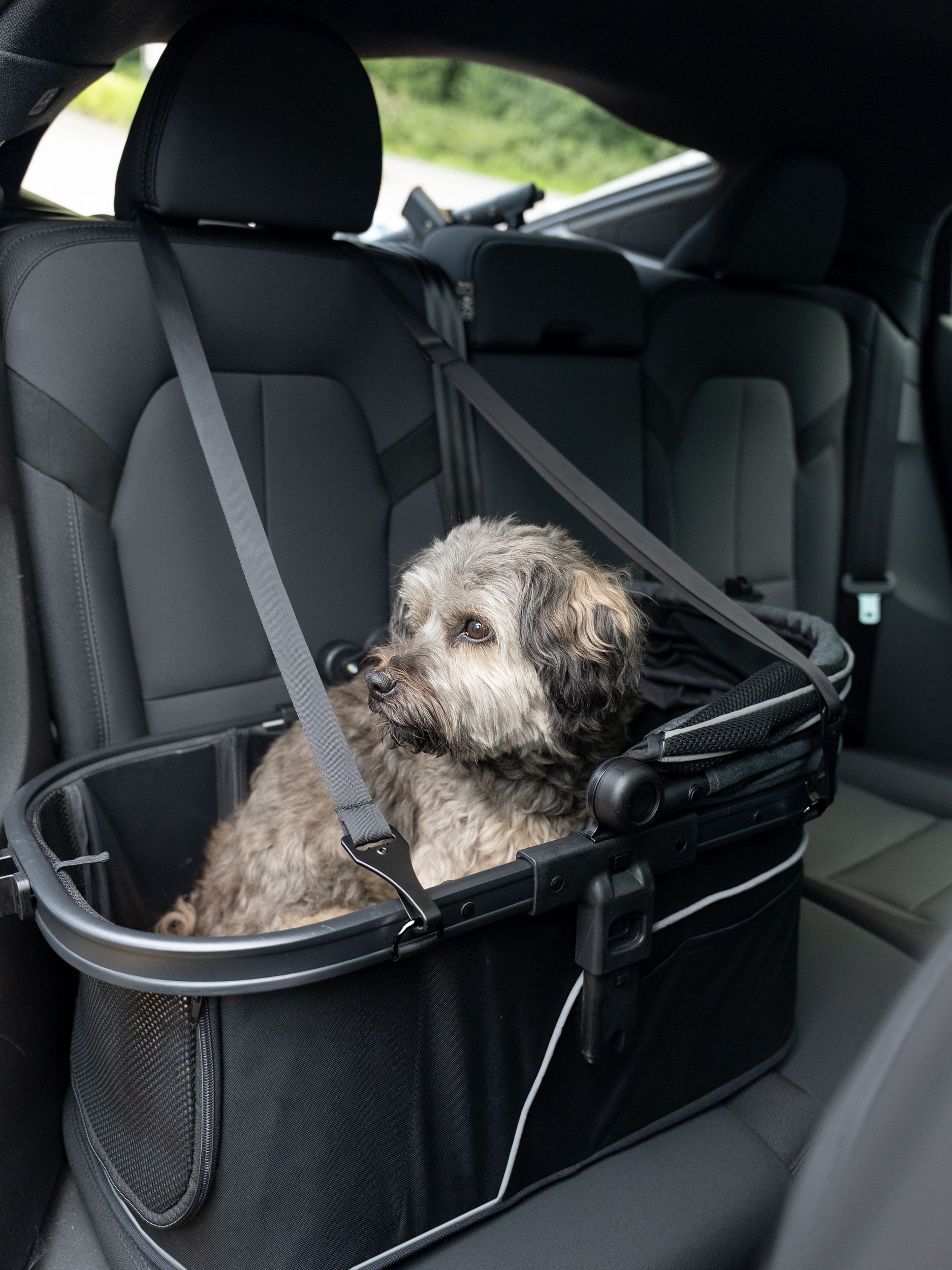 Der großzügige Sitzkorb kann mit wenigen Handgriffen herausgenommen und im Auto gesichert werden. So entsteht eine sichere Reisemöglichkeit, ohne zusätzliches Umladen.