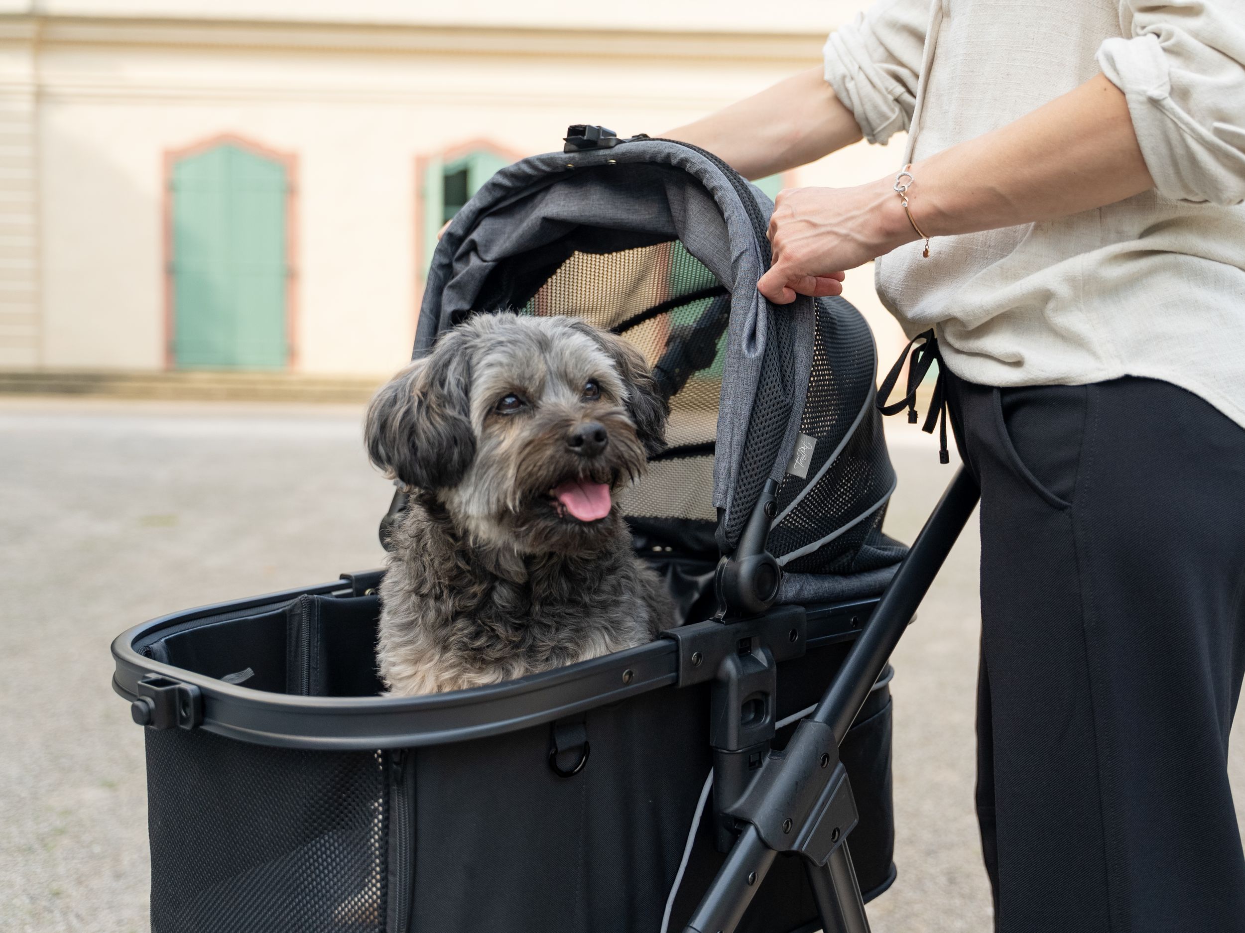 Der Walk Hundebuggy vereint Komfort, Funktionalität und ein durchdachtes Design. Ideal für Hunde bis 22 kg, bietet er einen geschützten Rückzugsort – beim Stadtbummel, auf längeren Spaziergängen oder für ältere und eingeschränkte Vierbeiner.